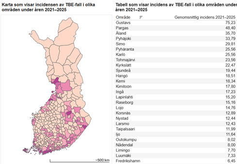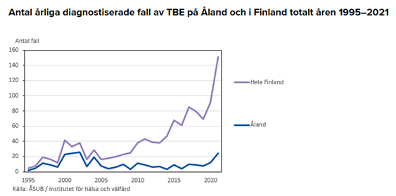Social- och miljöutskottet konstaterar att Åland tidigare haft en mycket hög andel av Finlands TBE-fall. TBE-förekomsten på Åland har varit stabil till skillnad från närregionen där fallen ökar. Även på Åland kan en viss ökning ses. Det åländska vaccinationsprogrammet med tre kostnadsfria doser infördes 2006 och har enligt tillgänglig forskning haft en tydlig effekt.